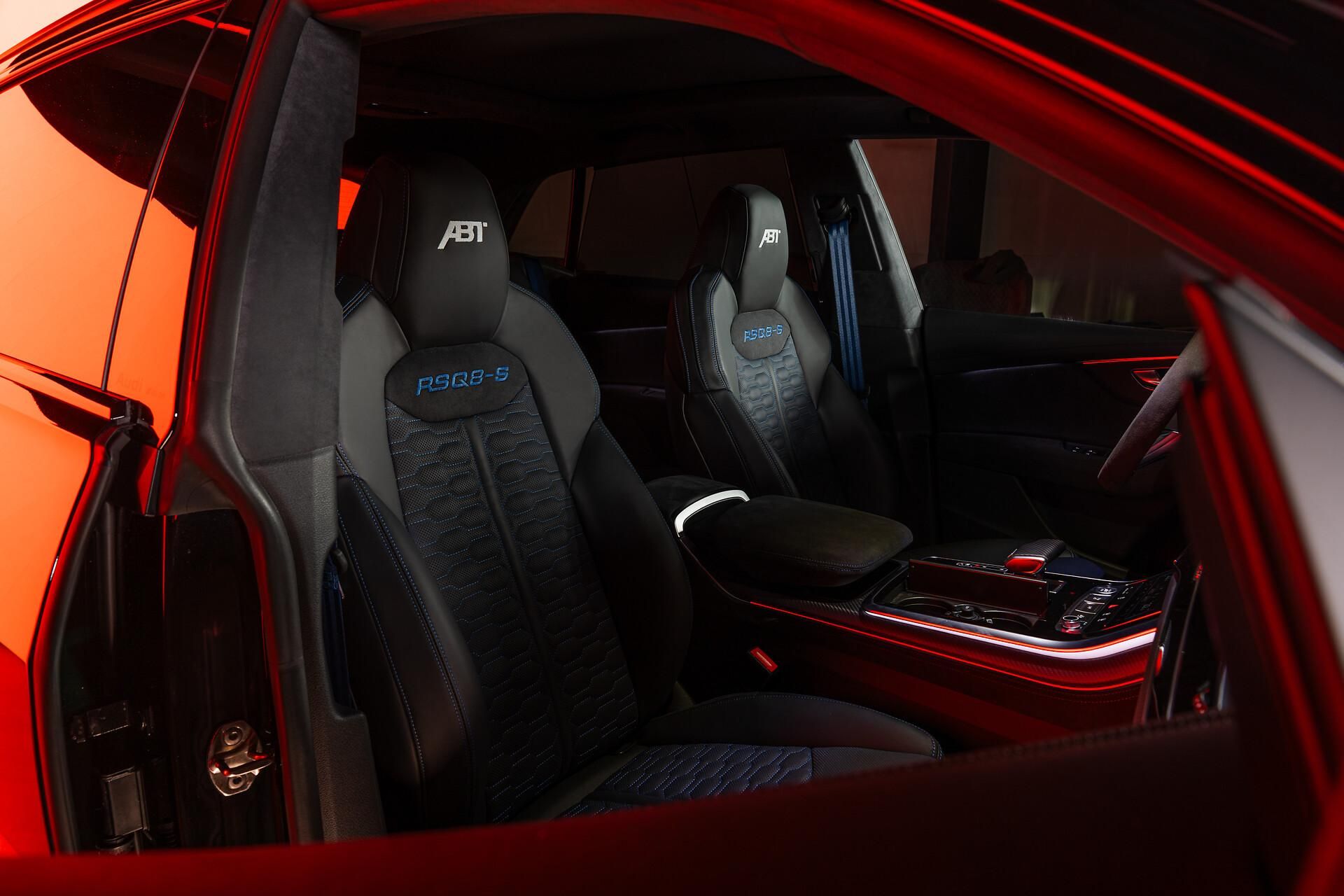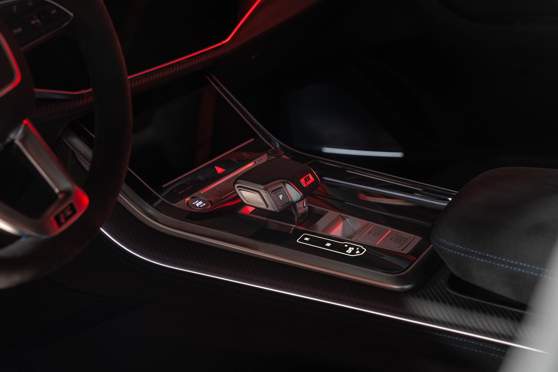 | ABT Audi RS Q8 - S leírásABT motortechnikaABT Power S teljesítménynövelés530 kW (720 LE), 950 NmVégsebesség a gyári értékkel megegyezőABT aerodinamikaABT első spoiler (matt karbon)ABT hátsó szárny (matt karbon)ABT kipufogórendszerABT rozsdamentes acél kipufogórendszer4 csöves kipufogóvégek, matt fekete, 102 mmABT kipufogóvégek házzal együttABT futóműABT ALC futóműszabályzásABT felnikABT HIGH PERFORMANCE IR23 (flowforming, súlyoptimalizált)Gumi: 295/35 R23, guminyomás-ellenőrző rendszerrelABT belső térABT üléskárpit ABT logóval és RSQ8-S felirattalABT kormány emblémaABT váltókar borítás (matt karbon)ABT küszöbvilágítás logóvalABT szőnyegek (RSQ8-S logó)ABT csomagtér szőnyegABT küszöbdíszlécek (RSQ8-S logó)ABT Start-Stop gomb borításExtra felszereltségAsszisztens csomagokVárosi asszisztens csomag360 környezetfigyelő rendszer (Audi pre sense 360)Utasvédelmi rendszer (Audi pre sense basic + rear)Kereszteződés asszisztens JX1Kiszállás figyelmeztetésHátsó keresztforgalom figyelőHolttérfigyelő (Side Assist)Tour asszisztens csomagKözlekedési tábla felismerés QR9Adaptív tempomat automatikus távolságtartással 8T5SebességkorlátozóElső kamera QK1Kitérő asszisztensBalra kanyarodás asszisztensStop&Go tempomat Audi pre sense front rendszerrelVészhelyzeti asszisztens automatikus segélyhívássalSávelhagyás figyelmeztető rendszerAdaptív vezetési asszisztens 6I6Parkolási asszisztens csomag (távoli parkolással)Tolatókamera360 kamerarendszer (Top View) KA6Külső és karosszériaKarbon külső tükrök (Audi exclusive) 6FIElektromosan állítható, fűthető, behajtható tükrök memóriával 6XLFekete tetősín 3S2Karbon optikai elemekFehér Audi emblémák és feliratokFekete magasfényű díszlécek 4ZDKarbon hátsó betétKarbon diffúzorCarbon / matt fekete optikai csomag (Audi exclusive) PQAVilágításOLED hátsó lámpák 8SCLED hátsó lámpák dinamikus indexszelFényszórómosó 8X1Matrix LED fényszórók lézerfénnyel PXBBelső tér és komfortAlcantara tetőkárpit 6NSBőr műszerfalKomfort könyöktámasz 6E6Audi exclusive szőnyegekRS logós ülésekValcona perforált bőr, méhsejt varrással, szellőztetve N5MRS sportülések Plus elölPneumatikusan állítható oldaltámaszDeréktámasz elölÜlésszellőztetésAudi exclusive biztonsági övekAlcantara váltókarAlcantara kezelőszervekAlcantara kormányRS design csomag kék (bővített) PEITechnológia és biztonságÉjjellátó rendszer 9R1Parkolóasszisztens kijelzéssel 7X5Head-up display KS1Karbon belső dekor 5MHIsofix elöl 3G4Kerámia fékrendszer elöl-hátul, kék féknyergekkel PC8Elektromos csomagtér takaróRozsdamentes csomagtér élvédő 2P2Komfortkulcs elektromos csomagtérajtóvalStart-Stop gombRiasztó rendszer 7ALKomfortkulcs riasztóval kombinálva PG3Kényelem és extrákPanorámatető elöl-hátul 3FURS sport kipufogó 0P6Soft-close ajtók GZ2Ülésszellőztetés elölÜlésmasszázs funkcióval 4D8Ülésfűtés elöl és hátul 4A4Hátsó naprolók 3Y6Bang & Olufsen Advanced hangrendszer 8RFUSB-C csatlakozók hátul UE8Sötétített hátsó üvegezés (privacy üveg) QL5 | |